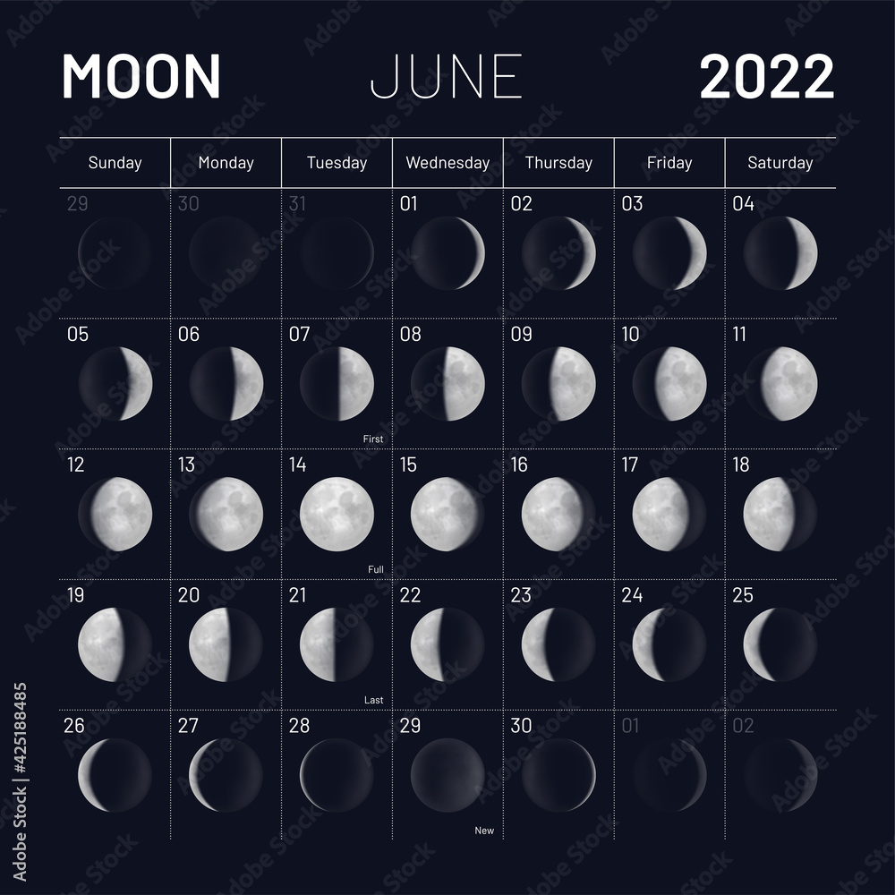 June Moon Calendar June 2022 Moon calendar. Astrological calendar design. planner : Here are the dates for the full moons in 2024. The next full moon will be on Friday, June 21 at 9:08 p.m. EDT (0108 GMT on June 22), but the moon will still appear full the night before and after . Itโs a brand new month, and the first week of June is being rounded out by a refreshing new moon thatโll give all zodiac signs an opportunity to start something new. The new moon rises on June 6, .